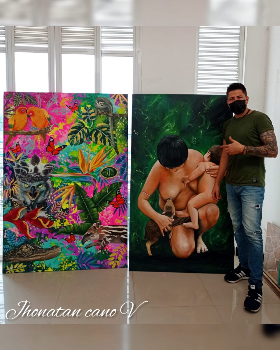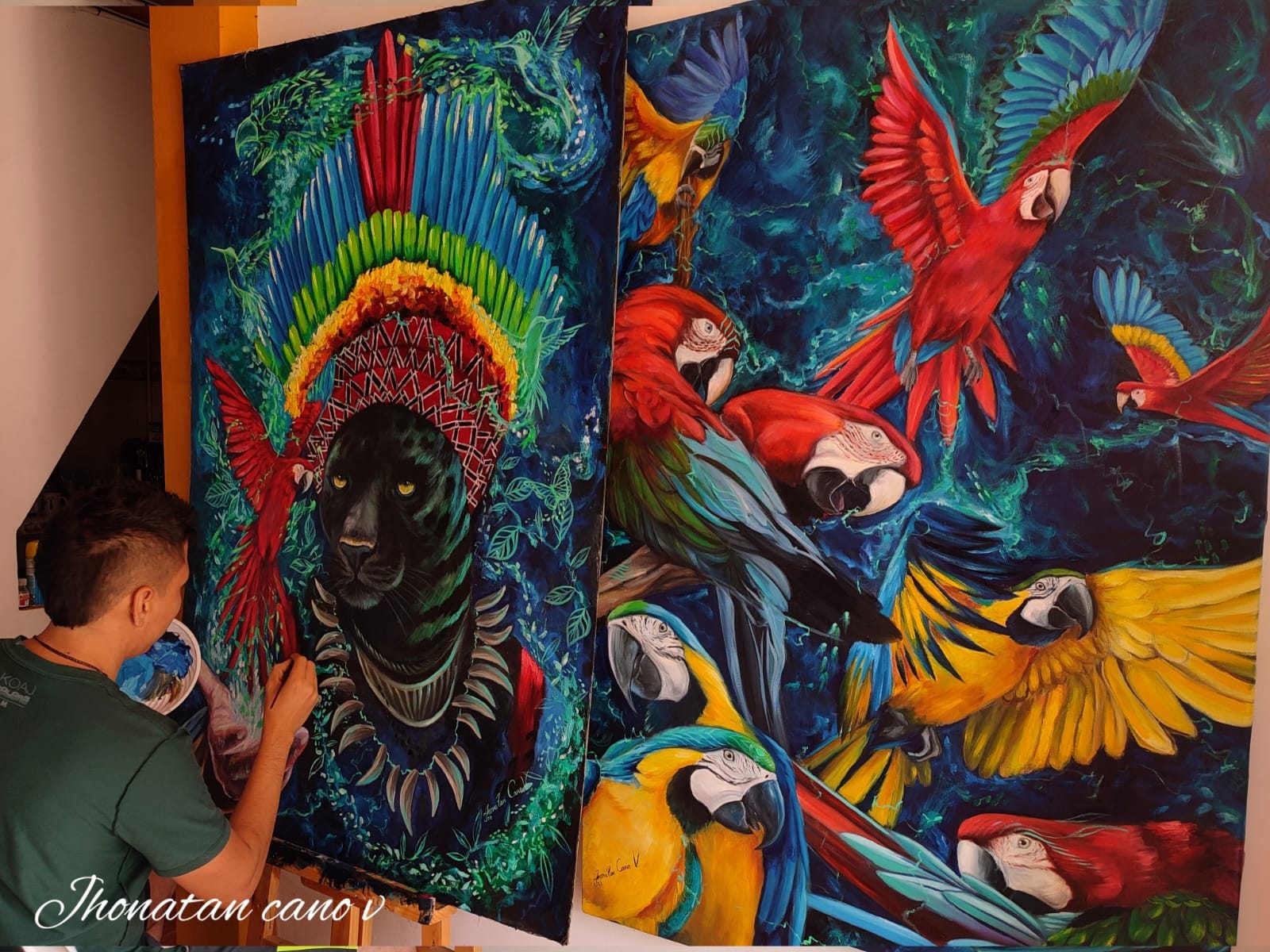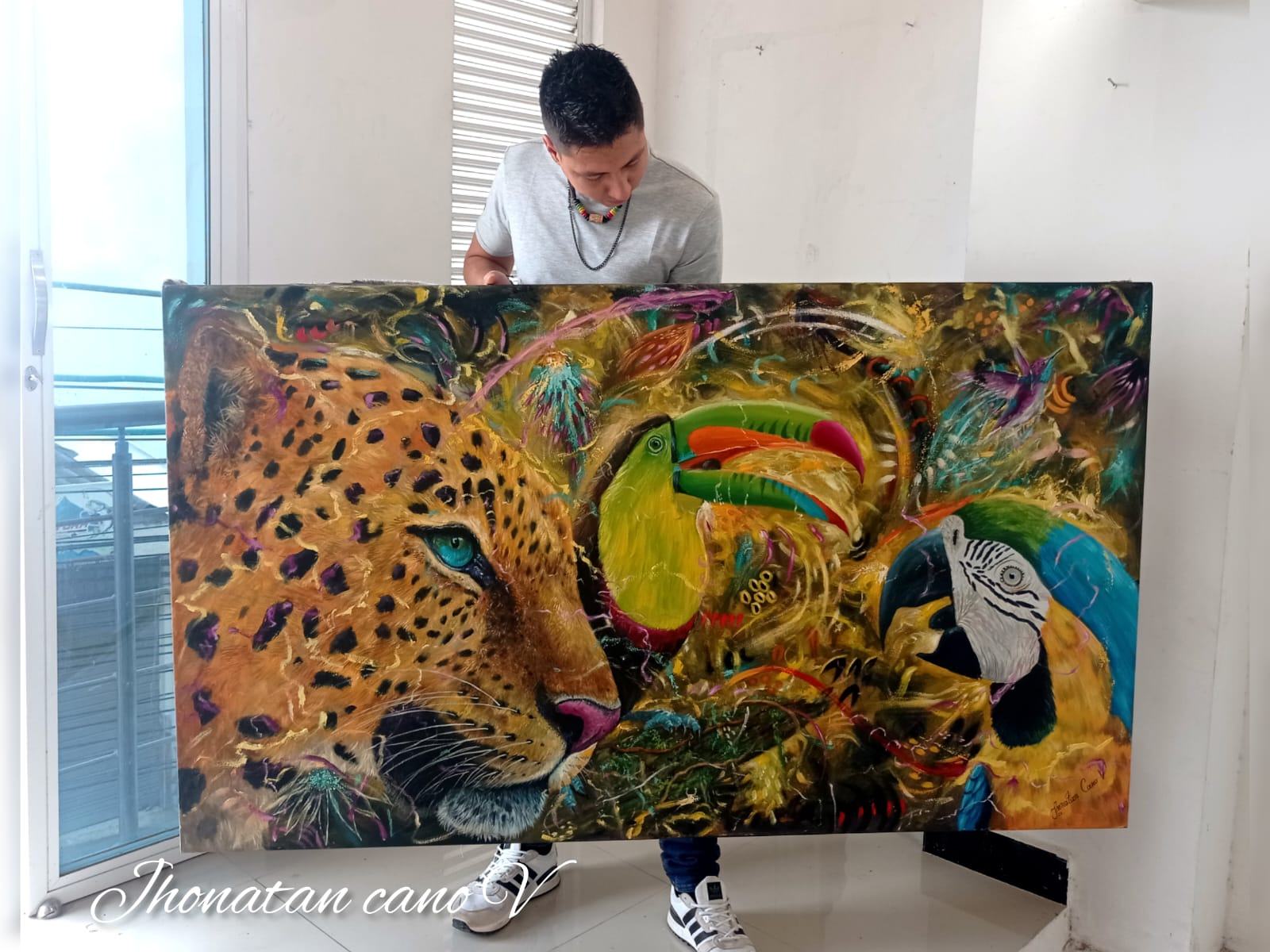 De los cuadros de este artista putumayense parecen brotar las garras del jaguar y las palabras sabias de los taitas que mantienen el equilibrio de la esplendida selva. La obra de Jhonatan Cano Vásquez será expuesta una vez más en Estados Unidos durante el presente año.