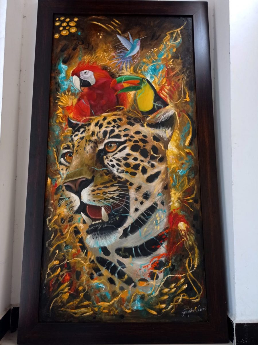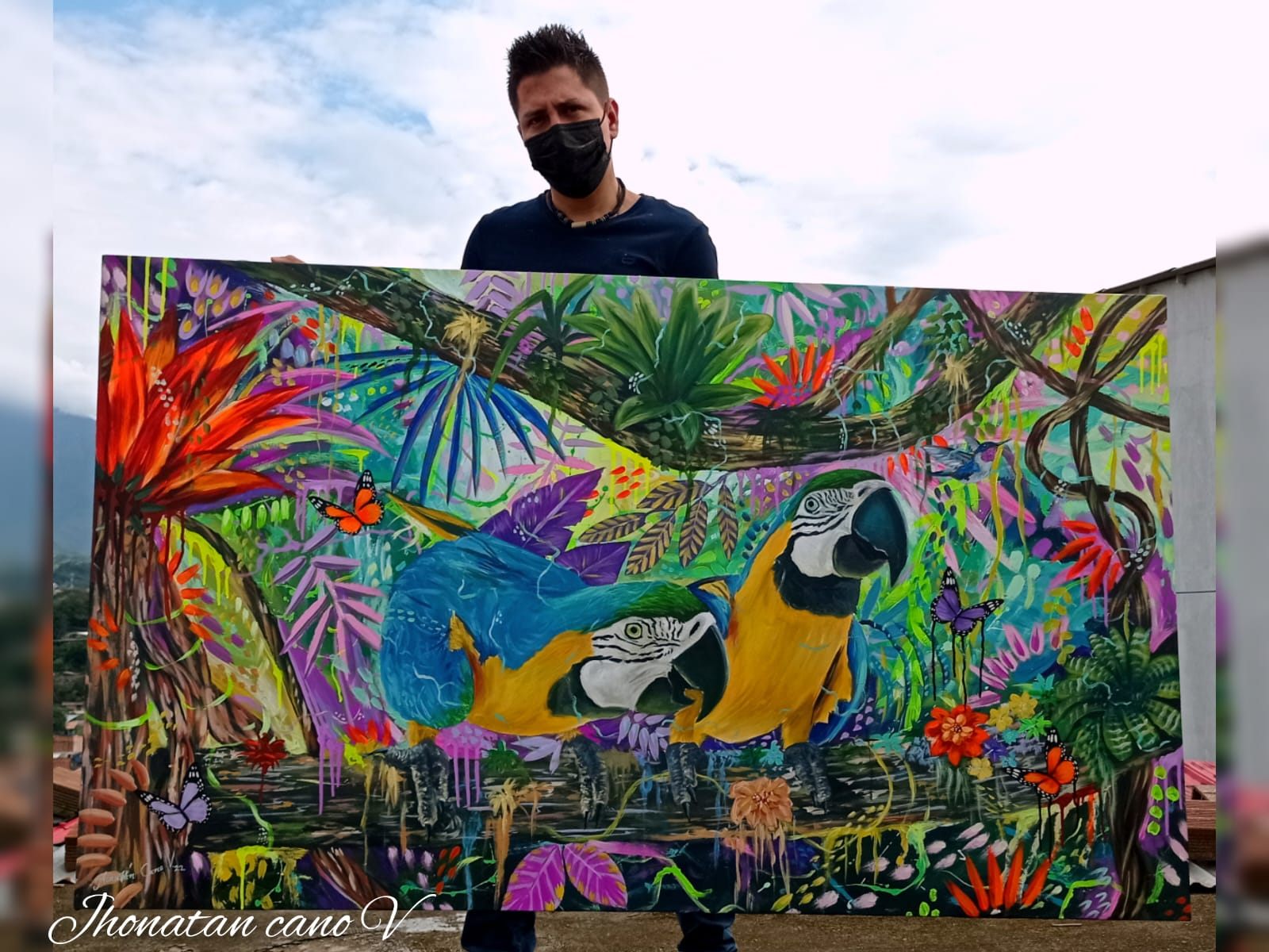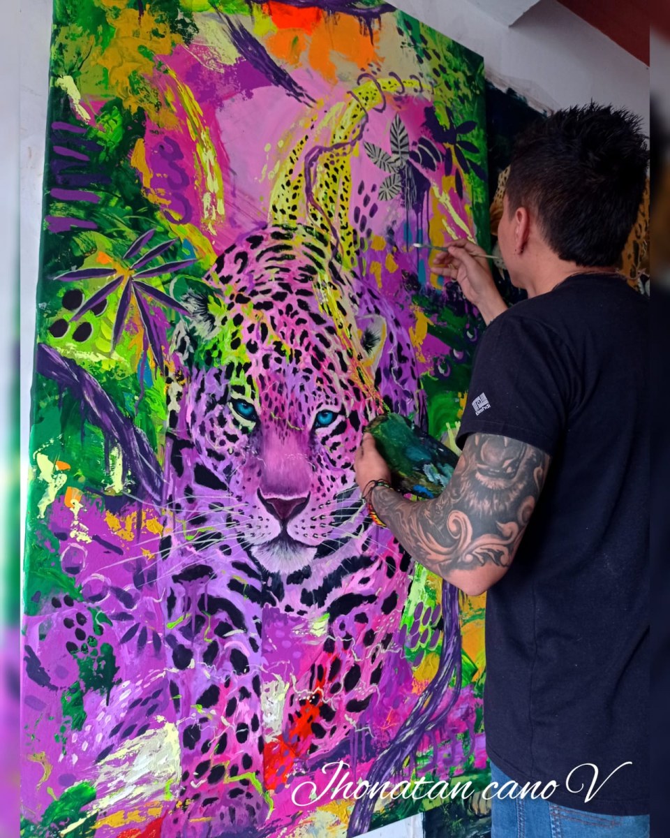 De los cuadros de este artista putumayense parecen brotar las garras del jaguar y las palabras sabias de los taitas que mantienen el equilibrio de la esplendida selva. La obra de Jhonatan Cano Vásquez será expuesta una vez más en Estados Unidos durante el presente año.