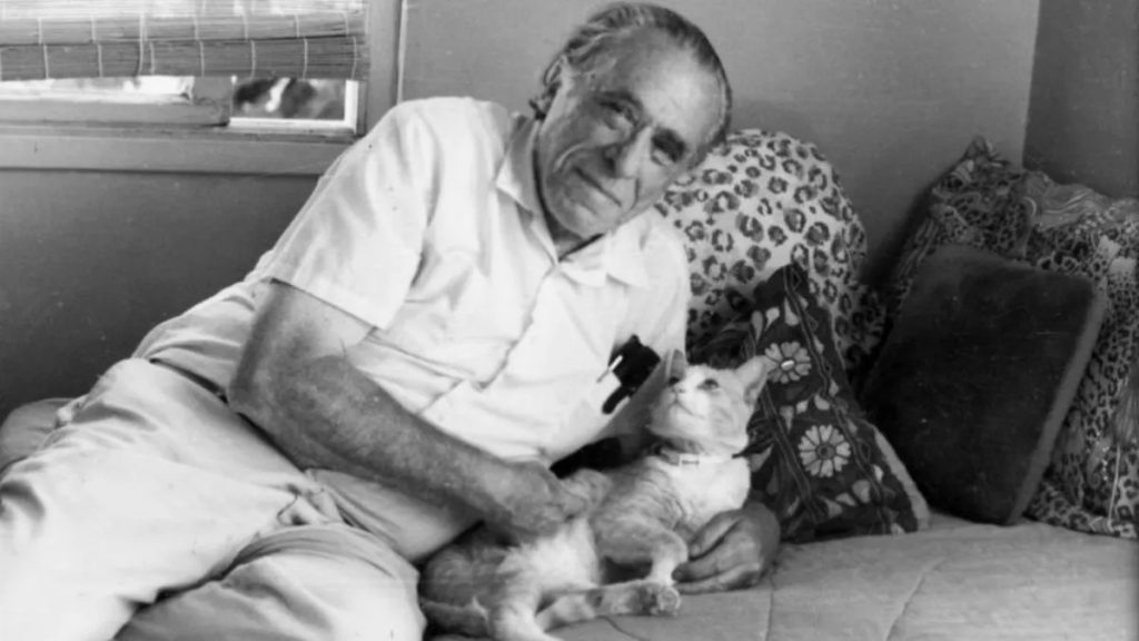 El irreverente y pesimista Bukowski, que buscaba destapar la cruda realidad en su literatura, tenía un lugar especial en su corazón para los gatos. Cuando envejeció y ya tenía algo de dinero, se mudó a un barrio suburbano con su esposa Linda Lee y llegaron a tener nueve gatos, que entraban y salían de su casa cuando quisieran. En su libro On Cats (Cannongate, 2015), publicado de manera póstuma, demuestra sin reservas el amor que sentía por los gatos. Para el autor, «Es bueno tener un montón de gatos alrededor. Si uno se siente mal, mira a los gatos y se siente mejor, porque ellos saben que las cosas son como son. No hay por qué entusiasmarse y ellos lo saben».